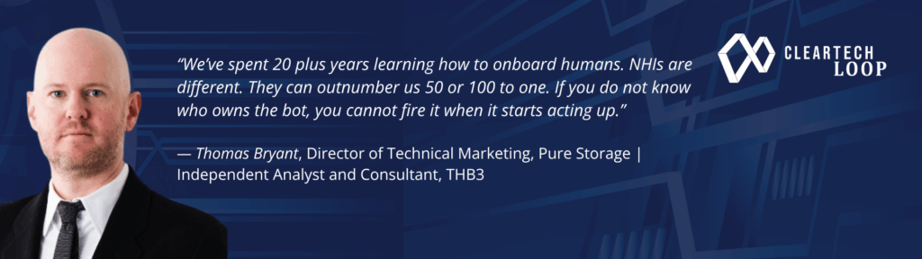 We have spent years getting better at onboarding humans. We know how to issue access, credentials, permissions, and systems. NHIs are a different animal. As Thomas put it, they can outnumber humans 50 or 100 to one. That changes the scale of the problem immediately.
